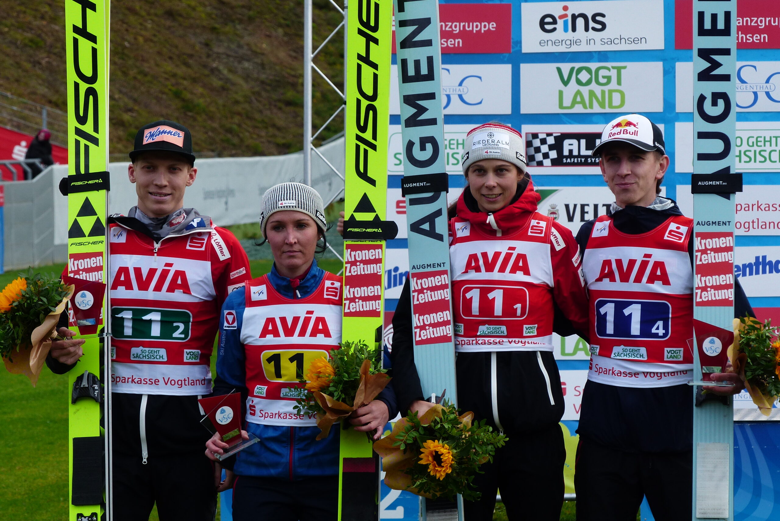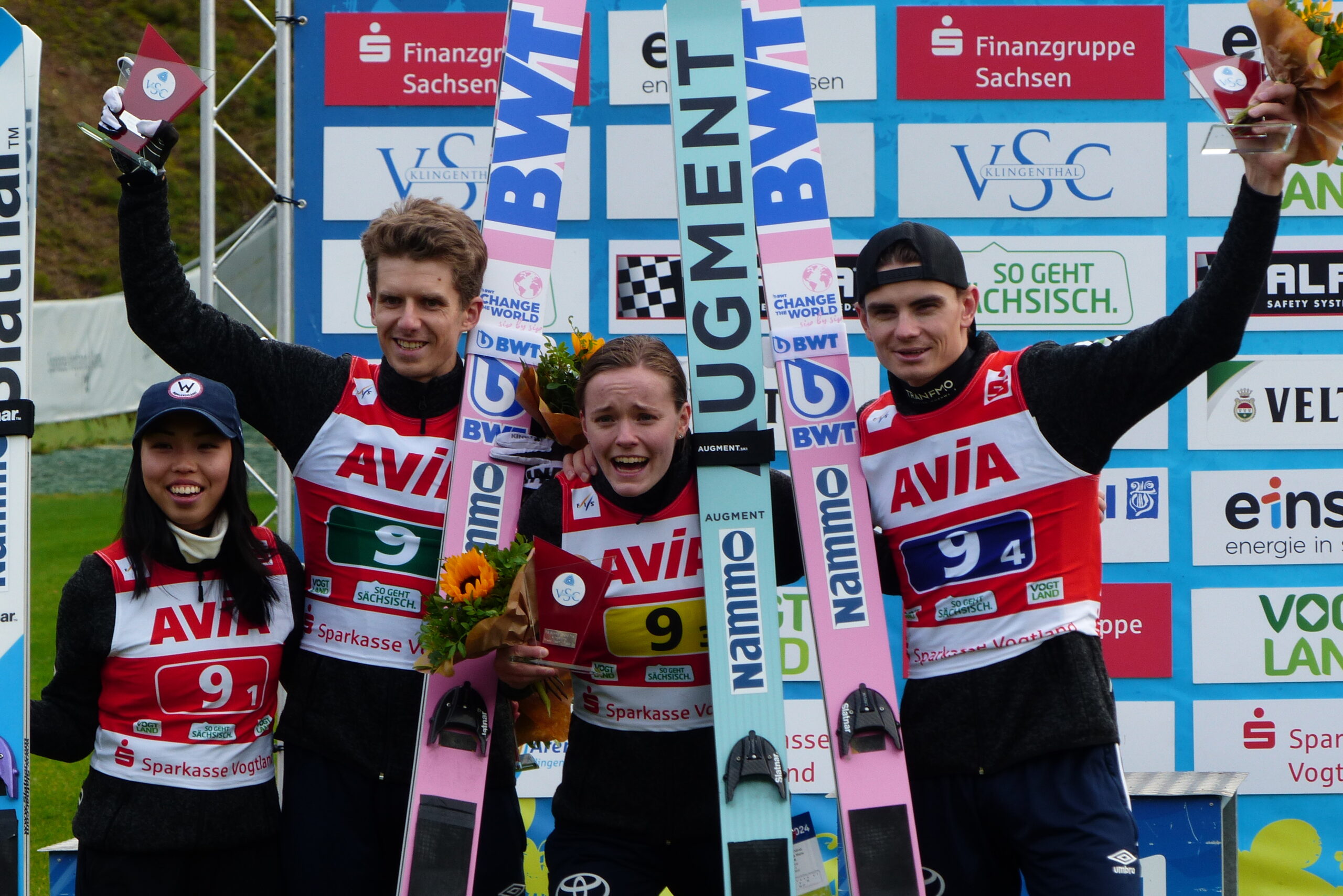 Definitivní tečkou za letošní letní Grand Prix byl dnes v Klingenthalu závod smíšených týmů. Ten vyzněl nejlépe pro domácí Německo, které urvalo výhru v napínavém závěru před reprezentací Norska. Třetí místo obsadila reprezentace Rakouska.