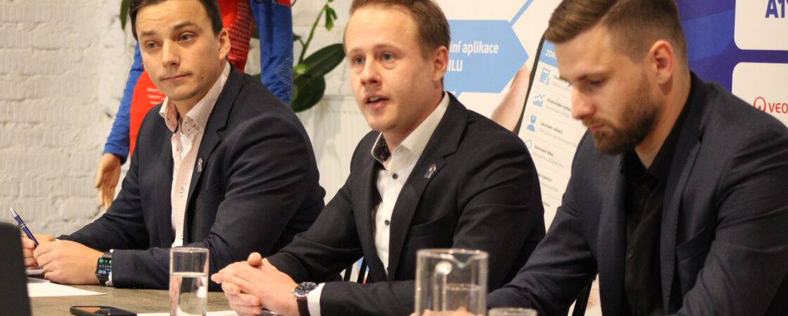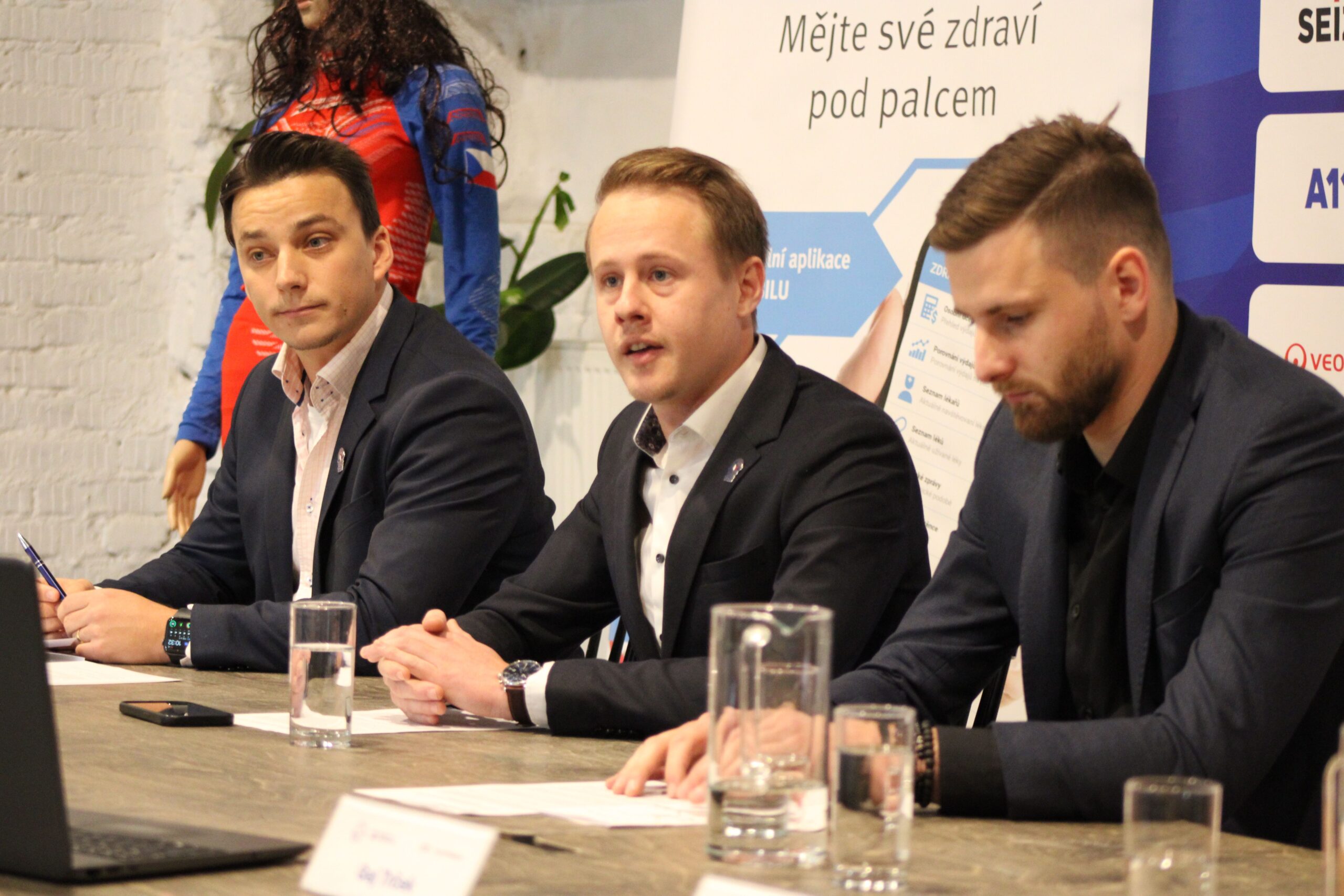Foto: Vít Háček a Filip Sakala na tiskové konferenci (autor: Jiří Korbel)