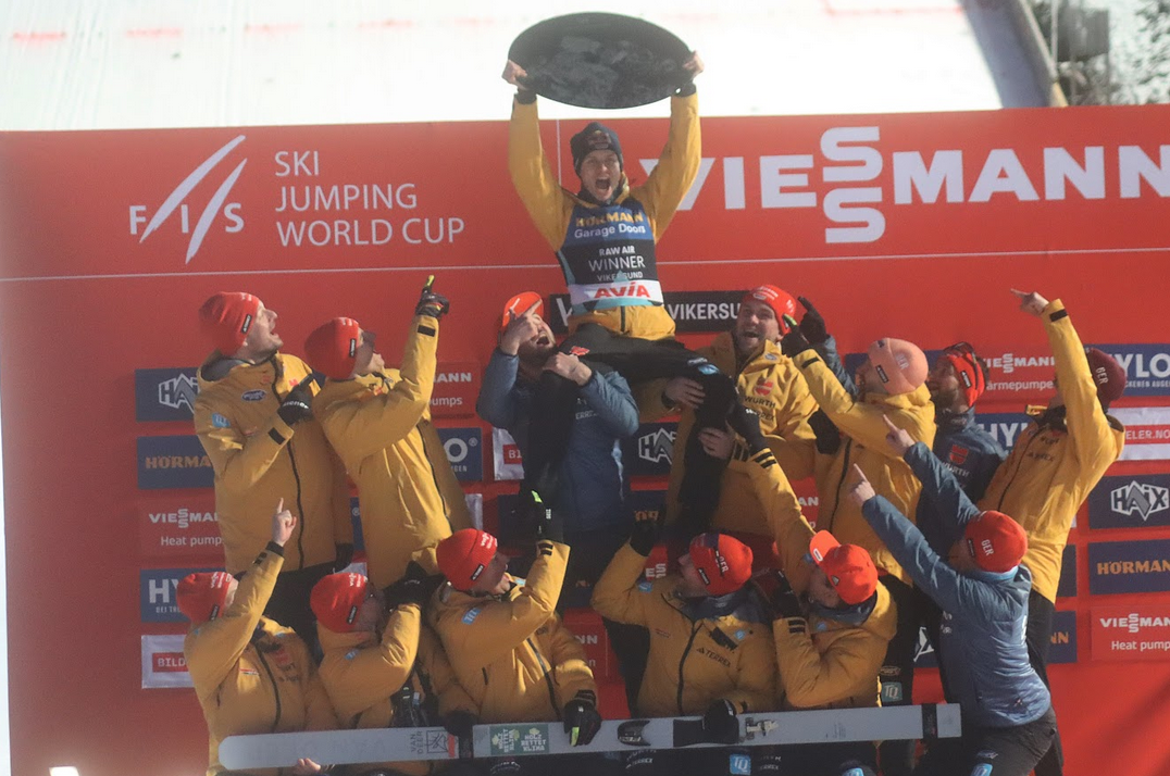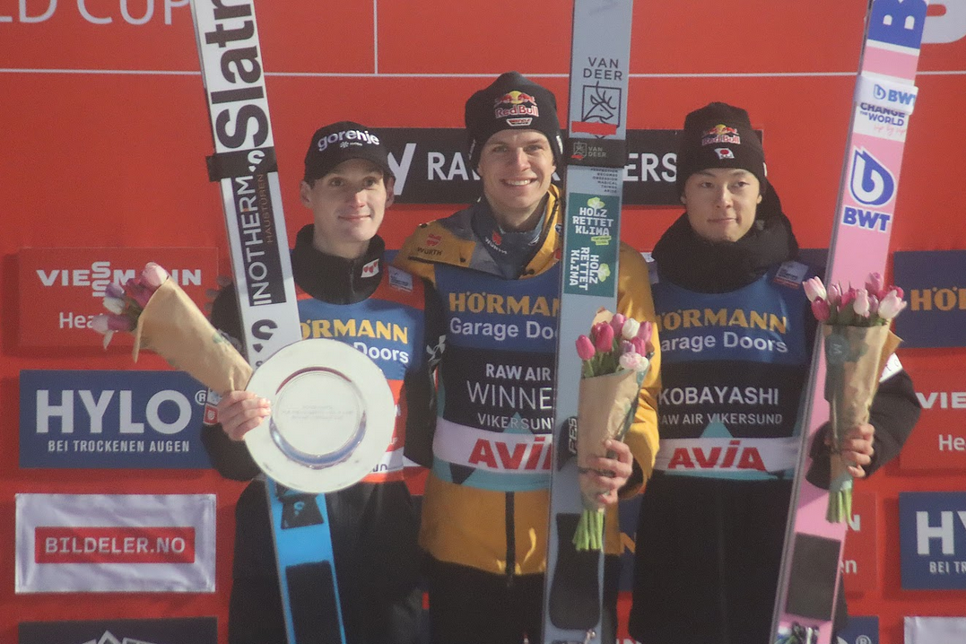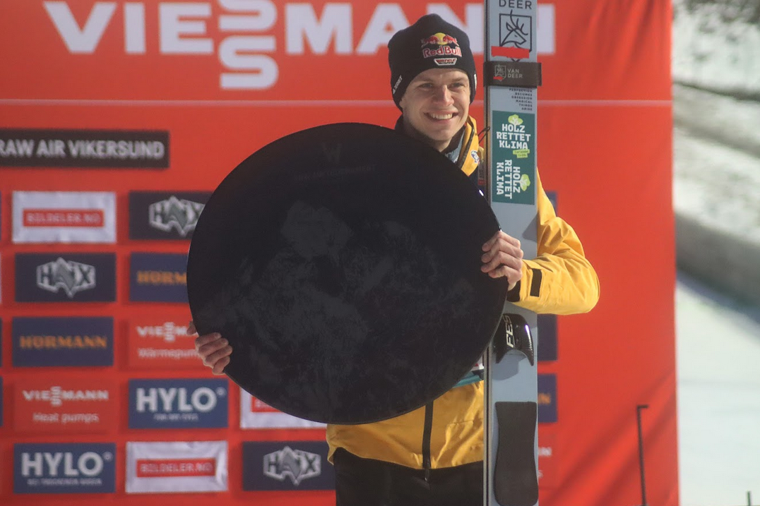 Příroda si nedala pokoj ani v nedělních večerních hodinách. Závěrečný závod ve Vikersundu začal se čtyřicetiminutovým zpožděním a nakonec se stal pouze jednokolovým. Naprostou raketu odpálil Domen Prevc, který vyšperkoval nejdelší pokus víkendu vynikajícím stylem a připsal si jasné vítězství. V pořadí RAW Air turné však udržel celkové prvenství dnes druhý Andreas Wellinger.