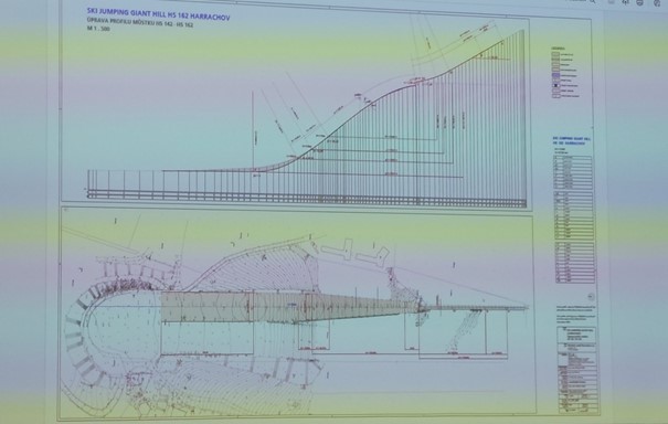 Poslední mezinárodní závody FIS v Harrachově proběhly v březnu 2016 v rámci FIS Cupu na středním můstku. Mamutí můstek spí ještě od dva roky déle, velký můstek HS142 dokonce již od prosince 2011, kdy se posledním vítězem stal Richard Freitag. Jaký je aktuální stav tohoto můstku? „Nechali jsme to tam teď komplet vykácet, a najednou to nevypadá jako ruina. S pravidelnou údržbou by to v zásadě mohl být pořád skákatelný můstek,“ zhodnotil Háček. Na mezinárodní závody to ale samozřejmě již není. Právě proto se o rekonstrukci menšího z dvojice můstků nejblíže vrcholu Čertovy hory nyní český skok ve spolupráci s vedením města snaží. Cíl zrekonstruovat můstky prezentoval starosta Harrachova Tomáš Vašíček již při nástupu do své funkce (psali jsme zde). Původní můstek s parametry K-125 a HS142 bude zvětšen na HS162, čímž by se měl stát prvním z nové kategorie takzvaných „Giant Hills“ (druhým by měl být americký Ironwood, tam však projekt naráží na finanční problémy) na pomezí klasických a leteckých můstků. Prodloužené skoky umožní dle slov Josefa Slavíka posunutí odrazové hrany, mírné navýšení bubnu a prohloubení profilu na úroveň dojezdu mamutího můstku.