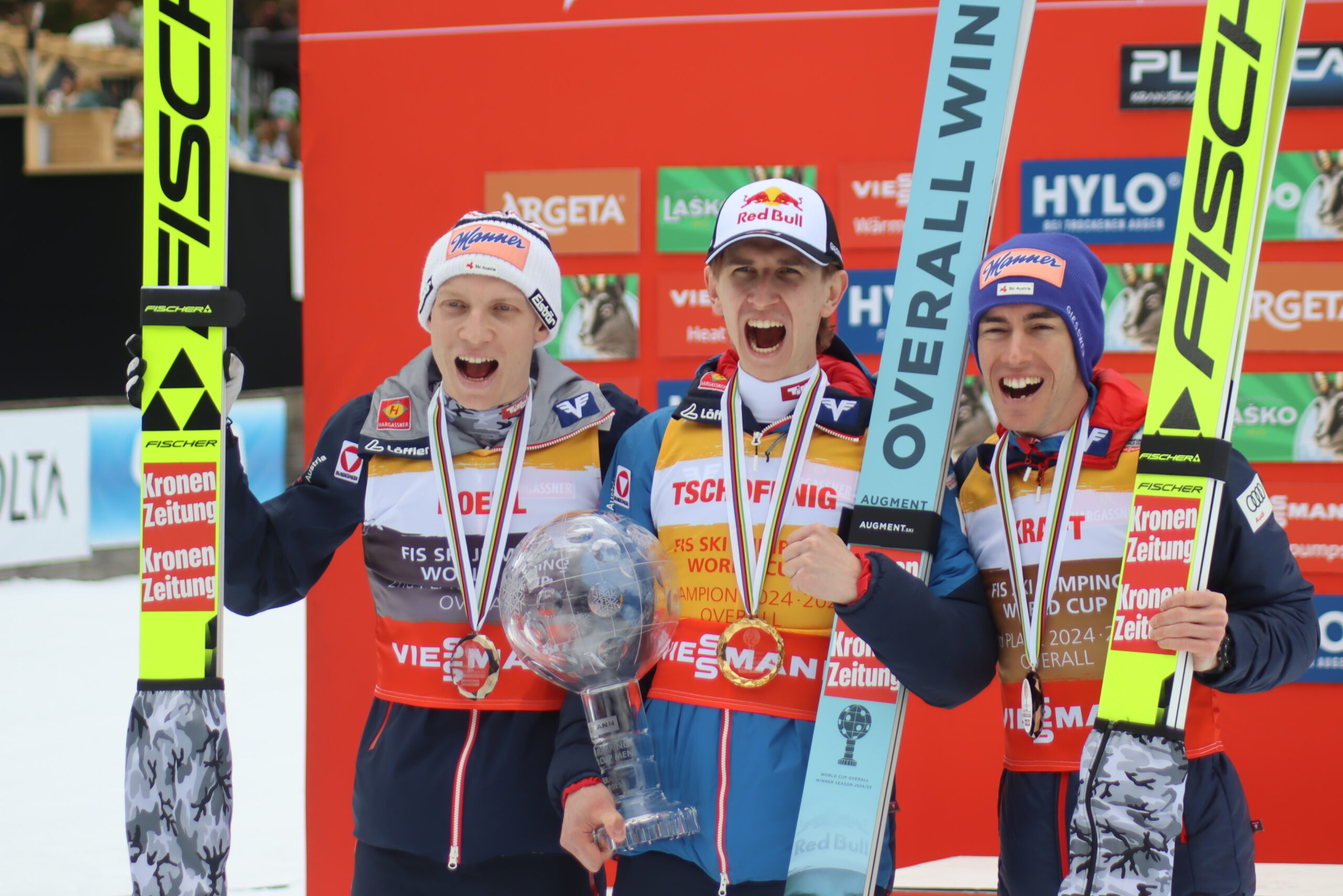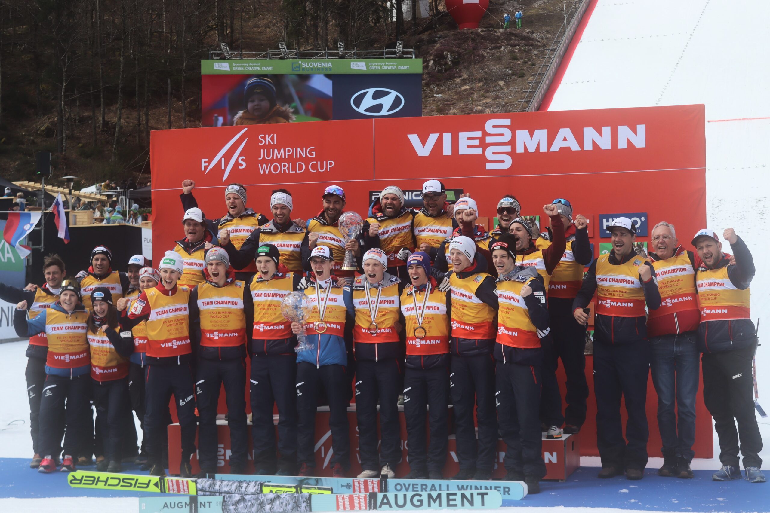Celkové pořadí Světového poháru naprosto ovládli Rakušané, kteří se poprvé v historii postarali o přítomnost jediné země na stupních vítězů. Za triem superhvězd se díky skvělému závěru sezony zjevil dnešní vítěz Anže Lanišek, páté místo i díky suspendaci Johanna André Forfanga nakonec udržel Pius Paschke s těsným náskokem před šestým Deschwandenem. V Poháru národů šlo rovněž o suverénní krasojízdu Rakušanů, kteří za celou zimu nakumulovali impozantních 8343 a druhé Němce pokořili o propastných 3820 bodů. Třetí Norové již neukořistili ani polovinu zisku dominantních Rakušanů.