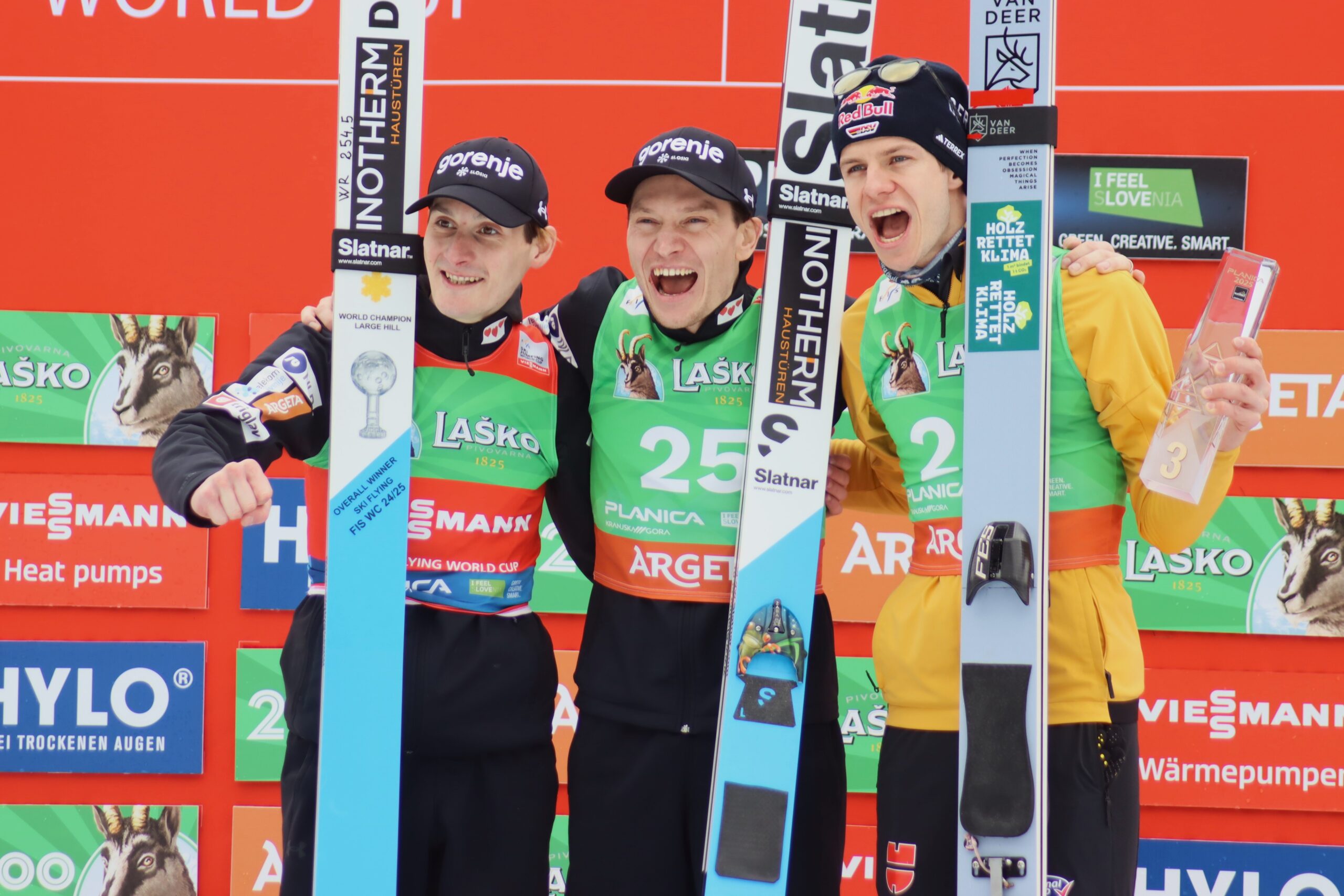 Nedělní závody konečně ukázaly, proč závěr sezony v Planici a lety na lyžích obecně fanoušci milují. Po předchozích propršených dnech, kdy na můstku vládl zadní vítr, se v neděli počasí umoudřilo a místy vykouklo i sluníčko. To přineslo i trochu protivětru, se kterou si elitní světoví letci poradili nadmíru. Vítězem se po stanovení impozantního osobního rekordu stal Anže Lanišek, srdce diváků však získal let nakonec druhého Domena Prevce. Ten se stal již třetím příslušníkem rodiny Prevců, který dokázal pokořit oficiální světové maximum! Díky výkonu 254,5 metru se tedy nejlepší výkon historie v závodech FIS vrátil do Planice.