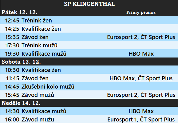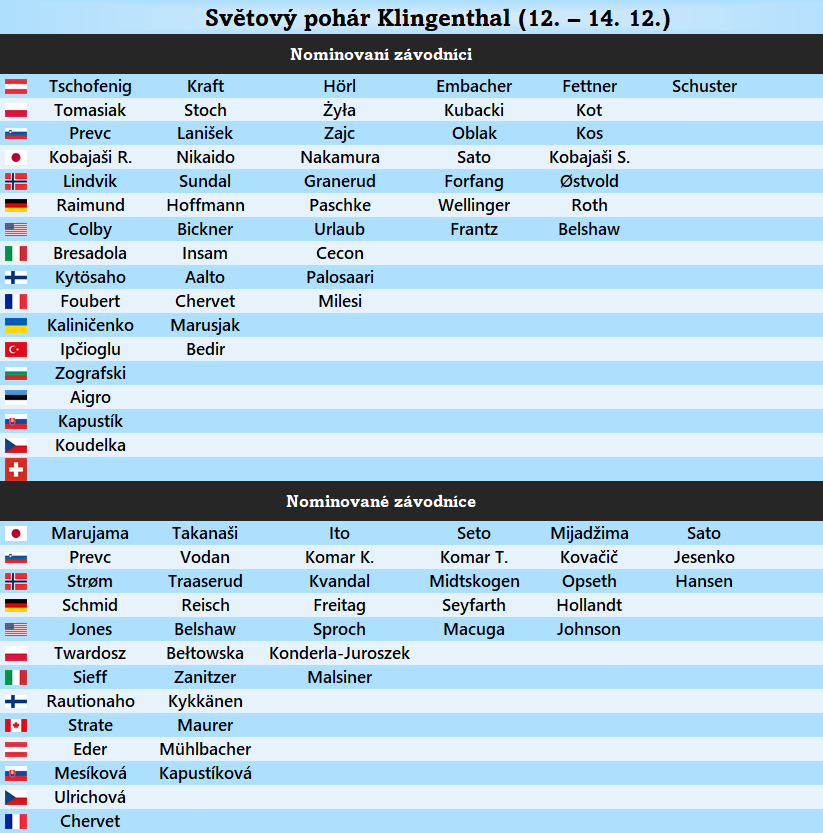 Nominace českého týmu na následující víkend (12. – 14. prosince):