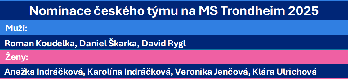 Koudelka nebude na rozdíl od Světového poháru jediným českým zástupcem na startu. Na vrcholné akci tým doplní Daniel Škarka s Davidem Ryglem a oproti poslednímu šampionátu se tak počet českých reprezentantů o jedno místo rozšířil. Oba junioři po nedávném juniorském šampionátu v americkém Lake Placid absolvují vůbec poprvé i ten seniorský, naopak na svůj premiérový start na MS bude muset ještě čekat 24letý Benedikt Holub, který v nominaci chybí. „Trochu se technicky ztratil, sice nakonec získal i nějaké body ve FIS Cupu, ale poslední dva měsíce byli závodníci, kteří měli lepší výsledky,“ odůvodnil absenci frenštátského skokana Trček.