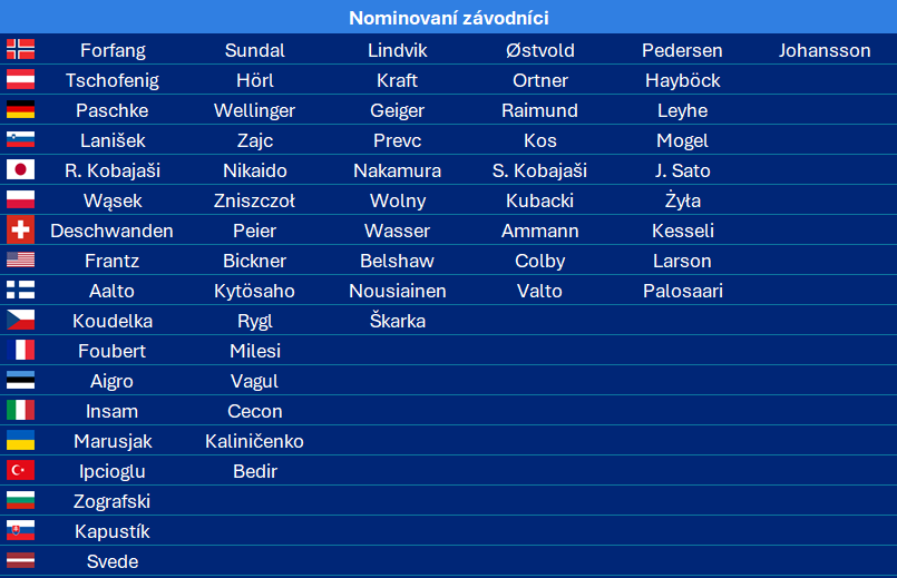Zatímco o celkový triumf ve Světovém poháru soupeří pouze Daniel Tschofenig a Jan Hörl, na mistrovství světa v Trondheimu může na medaili pomýšlet víc skokanů, a to nejen z elitní desítky. Mimo ni se totiž stále nachází Rjojú Kobajaši. Pokud si vzpomeneme na sezonu 2022/2023, vyvrcholenou šampionátem v Planici, byl to prakticky stejný scénář. Nepovedený start, po Turné čtyř můstků ladění formy a v závěru cenný kov z velkého můstku. Kobajaši se letos znovu vrátil, dvakrát ovládl silně obsazené závody v domácím Sapporu, zapracoval na přechodu do letové pozice a potvrdil, jak zkušeným závodníkem je. Netají se navíc tím, že si formu cíleně načasovává na vrcholné akce, a stejný postup zvolil i letos. Za mě je rozhodně žhavým adeptem na medaili.